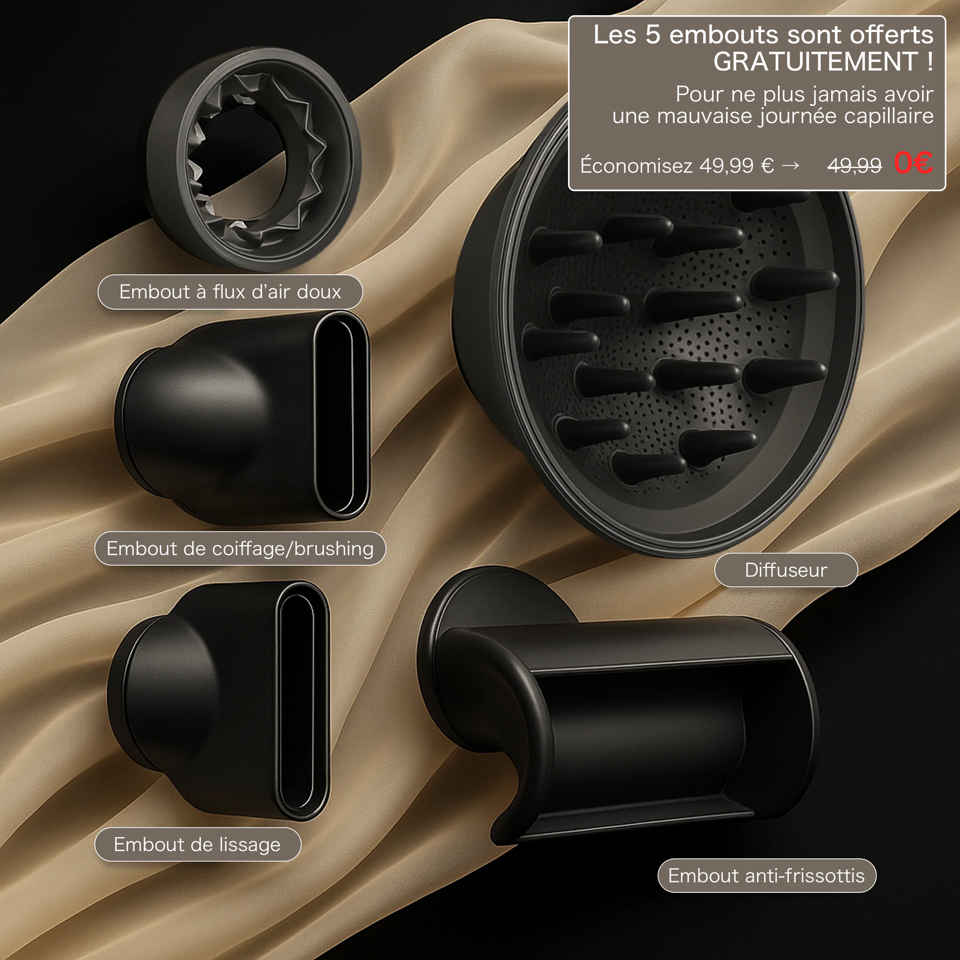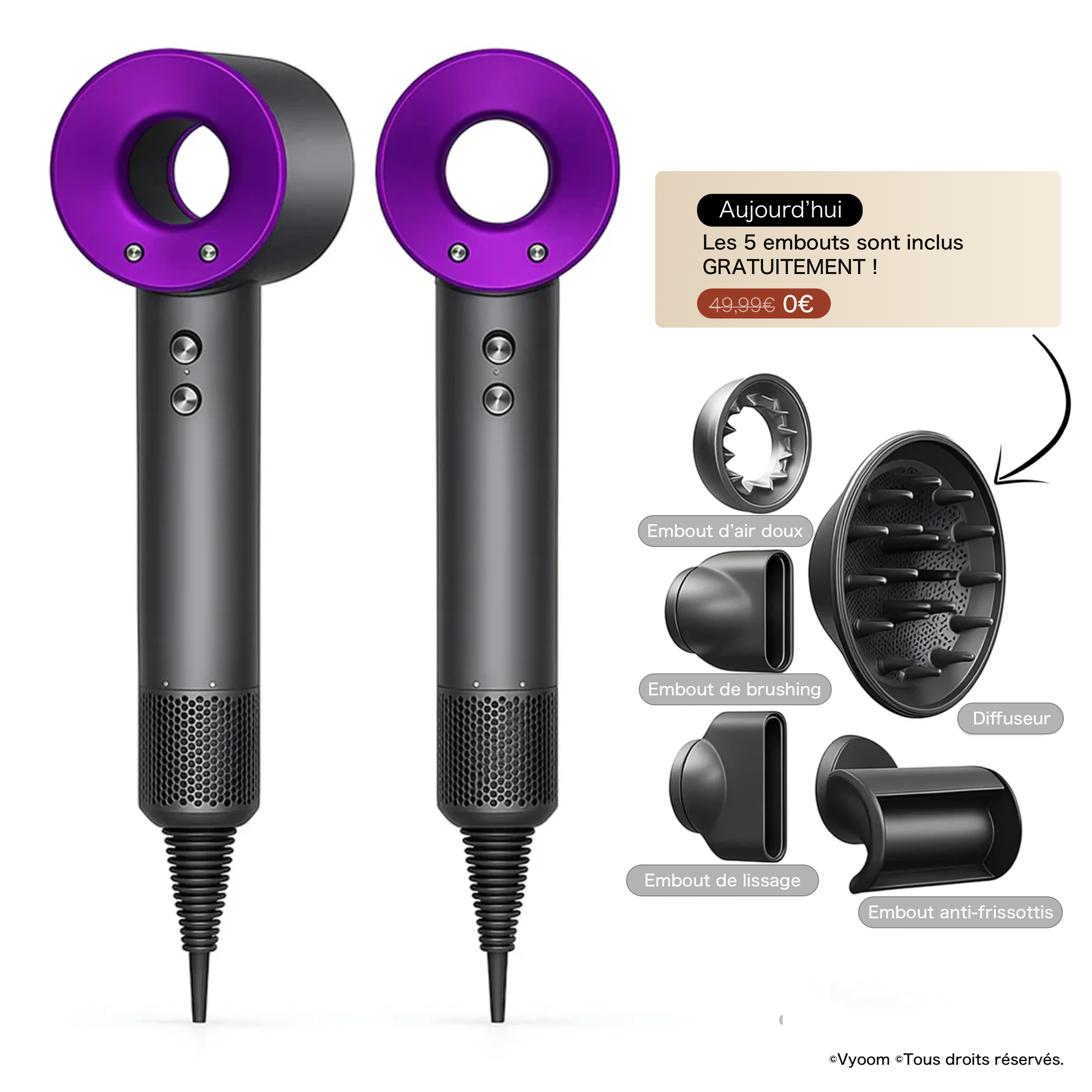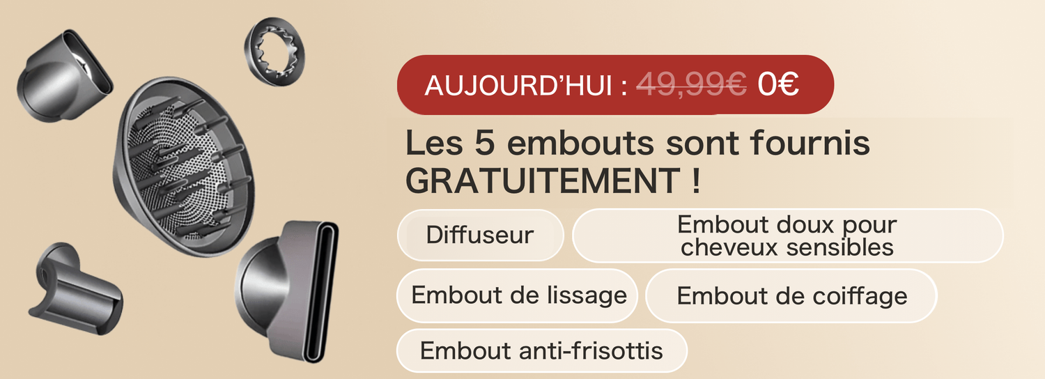 Oui – les cinq embouts professionnels sont inclus dans le pack exceptionnellement pendant 24 heures seulement. . Tu as tout ce qu’il te faut, sans frais supplémentaires.