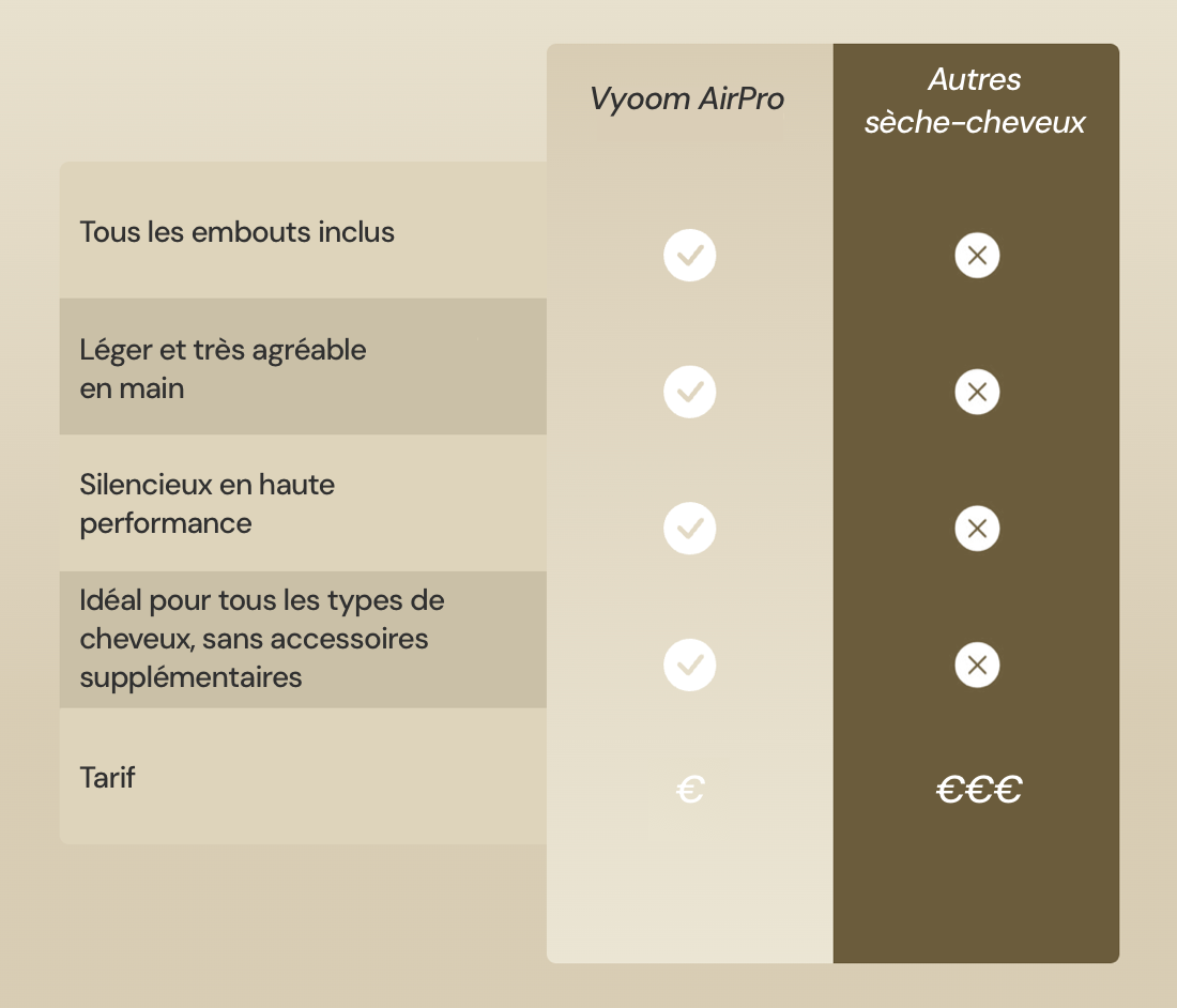 Bien au contraire : la technologie ionique et le contrôle intelligent de la chaleur de ton AirPro protègent et nourrissent tes cheveux à chaque coiffage.